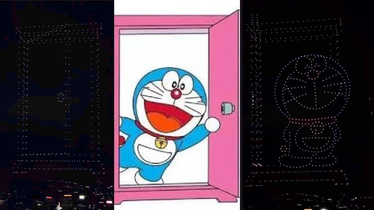 People were lucky to witness a drone show that showed Doraemon walking out of his anywhere door, one of the popular gadgets featured in the cartoon series. A video captured the incident and showed how the drones lit up the night sky to form Doraemon's iconic door, followed to show him posing with a smile.