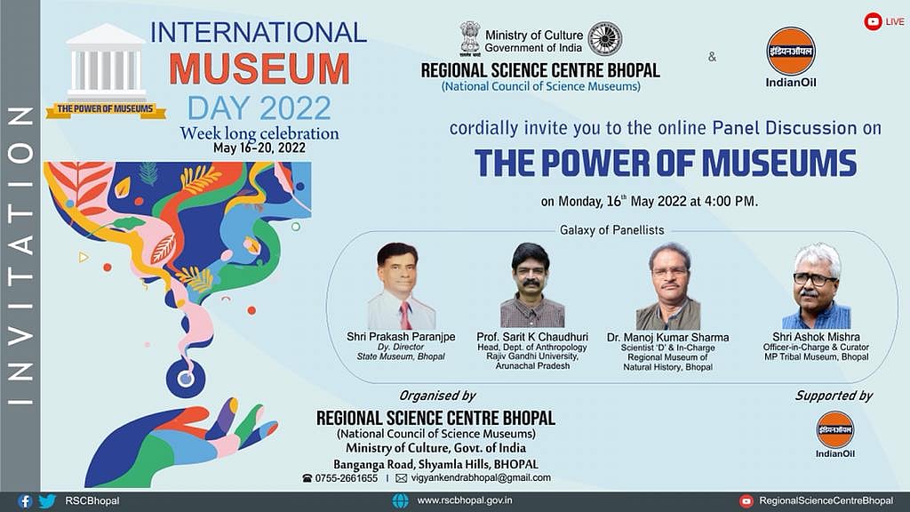 An online panel discussion on ‘The Power of Museums’ will be held on inaugural day at 4 pm. Deputy director , State Museum, Bhopal Prakash Paranjpe, head, department of Anthropology, Rajiv Gandhi University, Arunachal Pradesh, Prof. Sarit K Chaudhuri and Scientist ‘D’ & In-Charge , Regional Museum of Natural History, Bhopal will be the panellists of the discussion.
