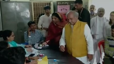 Gwalior (Madhya Pradesh): Union Minister Narendra Singh Tomar casted vote along with his family at a government school polling station in Murar locality, Gwalior on Wednesday. Former BJP minister Jaibhan Singh Pawaiya also exercised his franchise in the city.