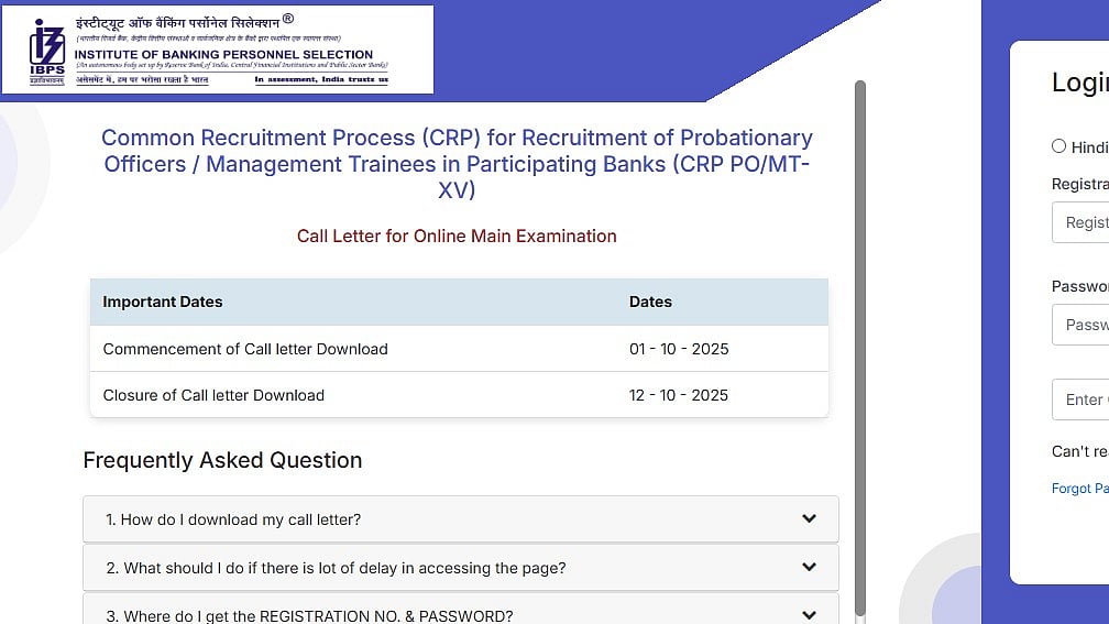 Applicants will have until October 10 to download their online call letters for the IBPS PO from the website. To obtain their call letter, those who applied must provide their registration number, roll number, password, and date of birth (dd-mm-yy) in the appropriate fields.