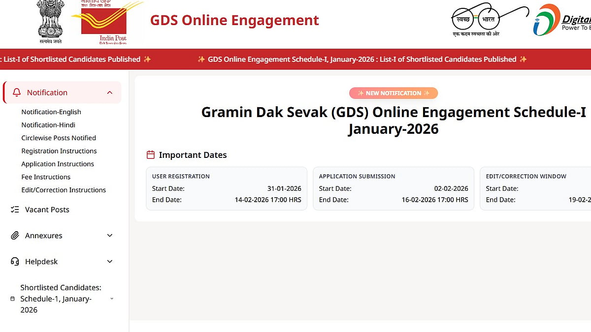 India Post GDS 2026 Result: The India Post has released the Gramin Dak Sevak’s Exam 2026 results on the official website. The results are available on the homepage of the official website, indiapost.gov.in. Candidates can also check the state-wise shortlisted candidates' results from the official website.