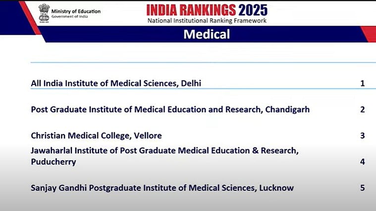 Here are the top medical colleges as per NIRF Ranking 2025: