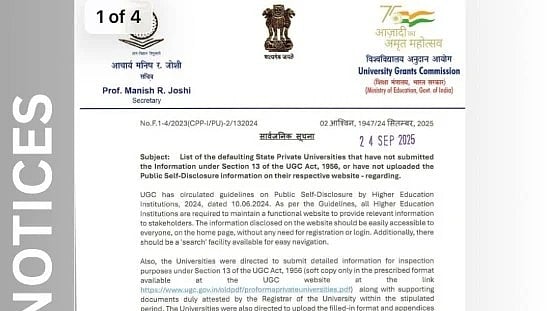 University Grants Commission (UGC) has issued notifications to 54 private Indian universities for their failure to comply with the guidelines of public self-disclosure that came into force in June 2024. As per the guidelines, institutions have been requested to put up significant information on their websites so that it becomes accessible to all without login or registration.