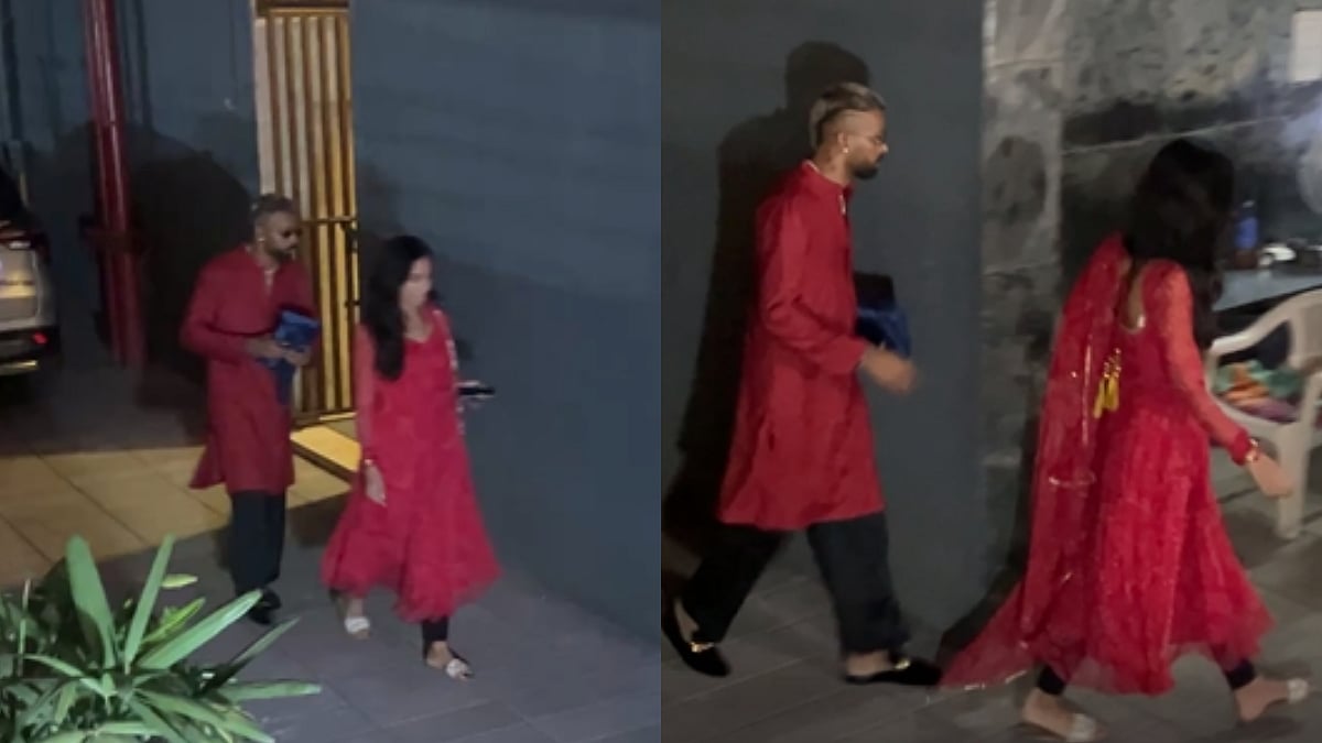 Cricketer Hardik Pandya and his girlfriend, Mahieka Sharma, who is a model and an actress, have been making the headlines because of their public appearances. The two on Monday night were clicked together during the Diwali festivities, and one thing that has grabbed everyone's attention is that both were wearing red outfits.