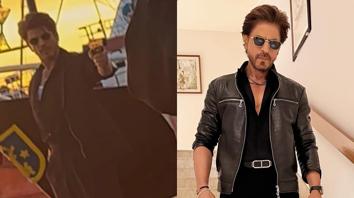 The striking detail? Shah Rukh is holding a gun in his left hand, slightly aimed forward, hinting at a tense action sequence. His poised stance and intense look suggest the photo captures a high-octane moment from the film. The leaked photo has raised excitement among fans for the forthcoming action-packed drama.