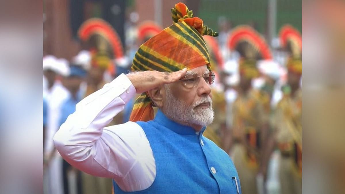 New Delhi: Prime Minister Narendra Modi sported a multicoloured Rajasthani leheriya print turban with white kurta and churidar for the 78th Independence Day celebrations at the historic Red Fort.