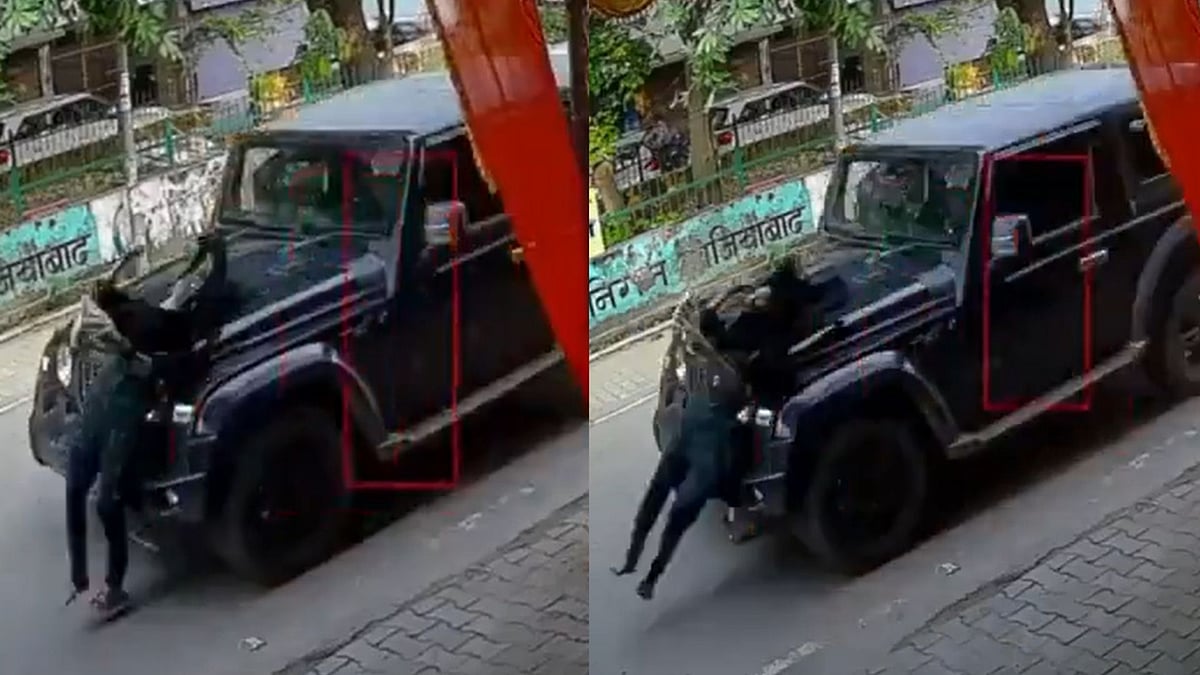 The CCTV footage shows her walking on the road when a speeding black Thar approaching from behind rams into her. The impact was so severe that the woman bounced off the car's bonnet and was thrown a considerable distance before falling, sustaining serious injuries.