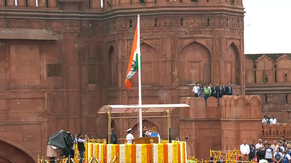 After hoisting the flag, PM Modi began his customary address to the nation from the ramparts of the iconic monument.