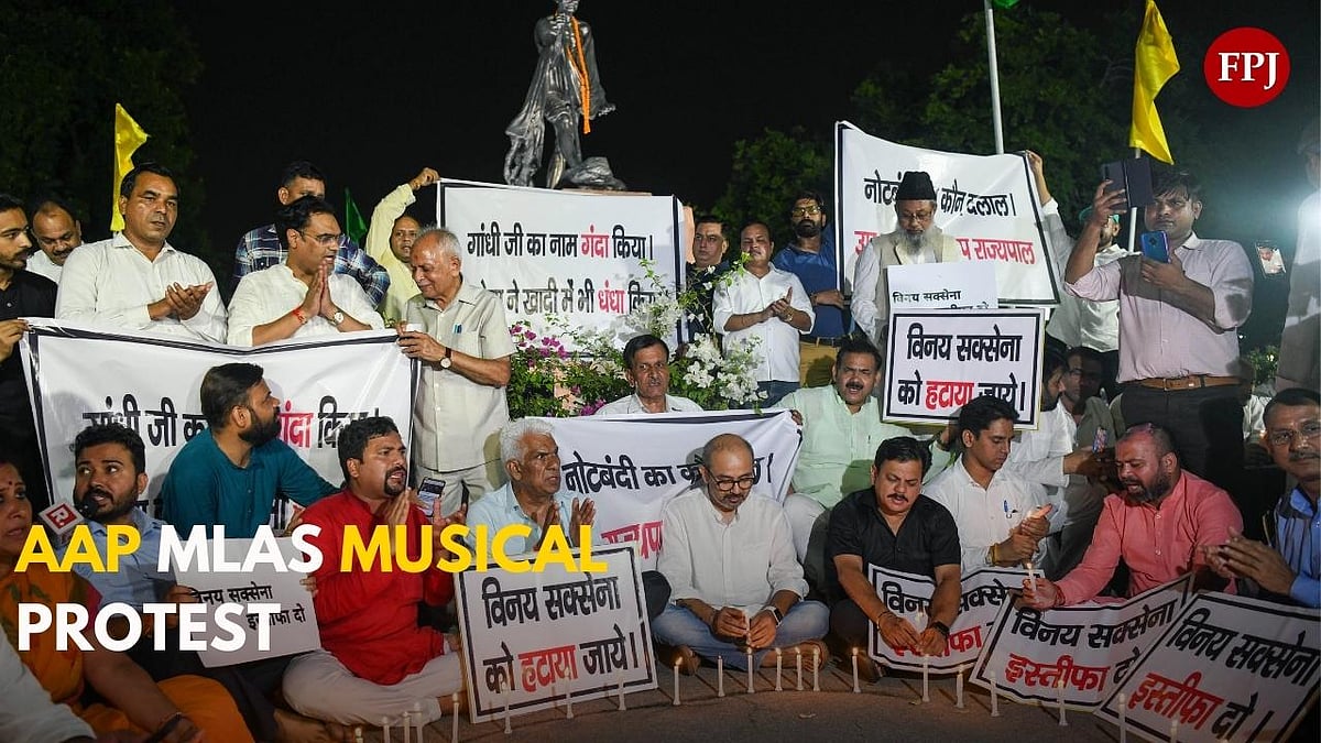 AAP MLAs are demanding the resignation of Delhi Lieutenant Governor VK Saxena for allegedly "whitening" the "black money" during demonetisation in 2016. The MLAs were singing songs, playing guitar and beats.