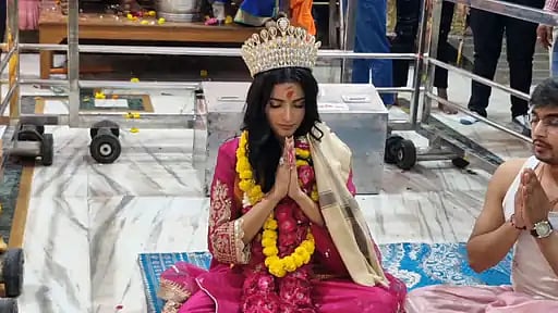 Miss India Nikita Porwal’s Crown Sparks Debate As She Wears It During Worship At Ujjain’s Mahakal Temple (WATCH)