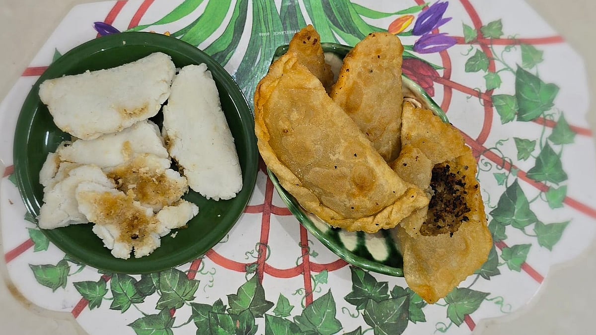 While Kinny says her favourite version is the traditional karanji filled with semolina, she adds that she would love to make its versions like the one she ate on a trip to Jhansi, which had green peas in it. She also points out a version created by her aunt. “It looks like a khari but is a nevri. She makes it with wheat flour and it is flaky,” she explains.