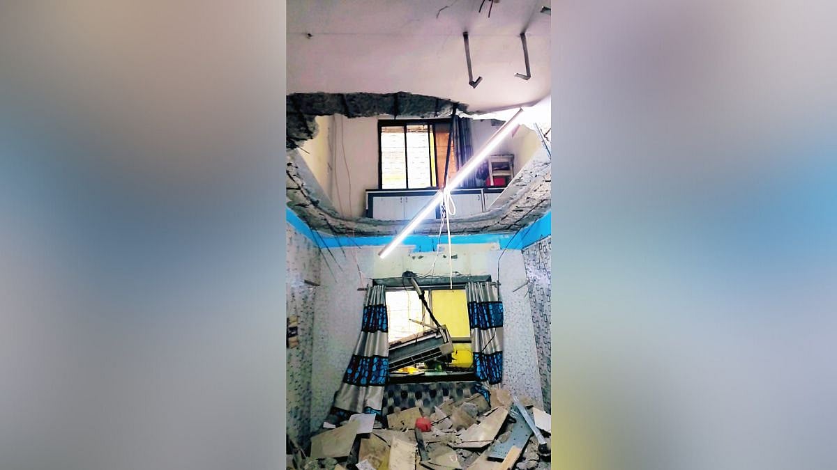 In the first incident, two residents were lucky to escape with minor injuries after a huge portion of the flooring of a first-floor flat collapsed on their ground-floor apartment in Mira Road at around 10 am Wednesday.