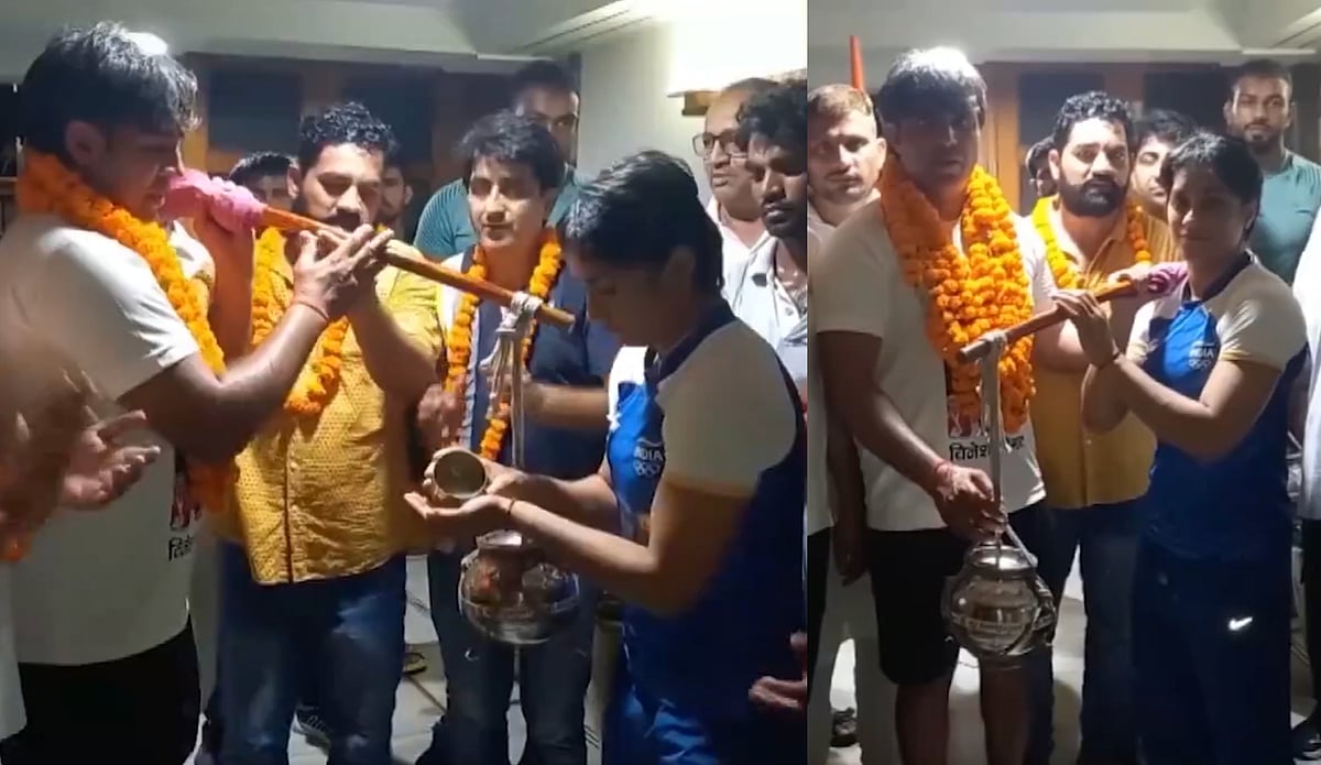 Watch: Ex-Kabaddi & Hockey Players Offer 'Ganga Jal' To Vinesh Phogat At Wrestler's Residence In Show Of Support