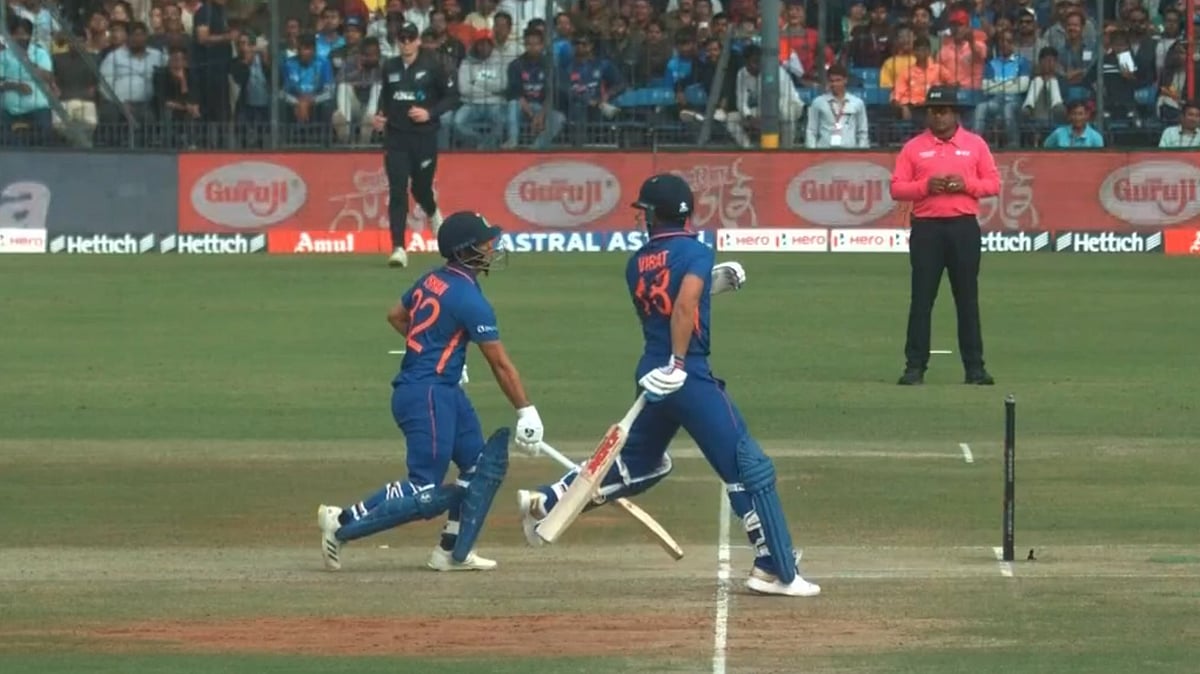 IND vs NZ, 3rd ODI: Virat Kohli was involved in a comical run out with Ishan Kishan as both batters were stuck at the striker's end, leading to the latter's dismissal in Indore.