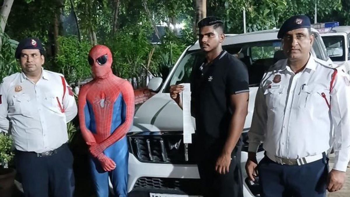 In a post shared by news agency ANI, the 'spiderman' was identified as a 20-year-old resident of Najafgarh named Aditya. Now, the picture of the 'Spiderman' standing with both hands crossed along with the traffic cops has gone viral.