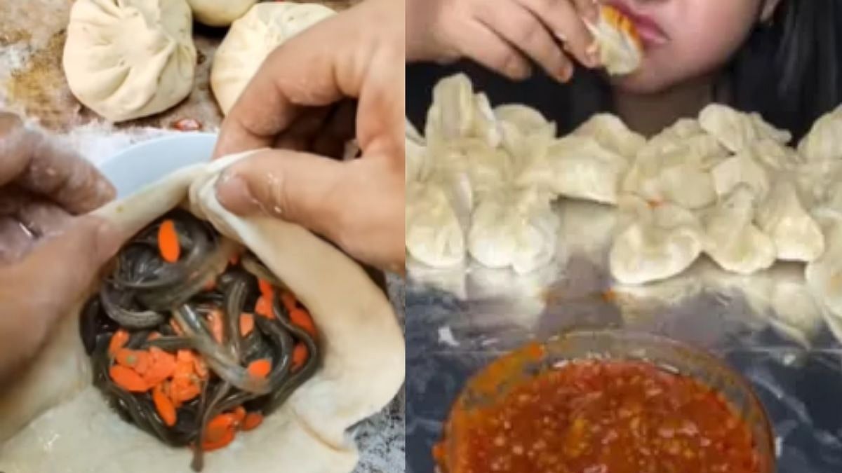 A Chinese street food page shared the footage on Instagram which people called an "Only in China" thing. It opened showing the chef filling a momo dough with live worms. Later, the momo stuffing was sealed and placed into a cooker. Next? The well-cooked momos were opened and shown in front of the camera, giving a glimpse of the carcass inside the dish.