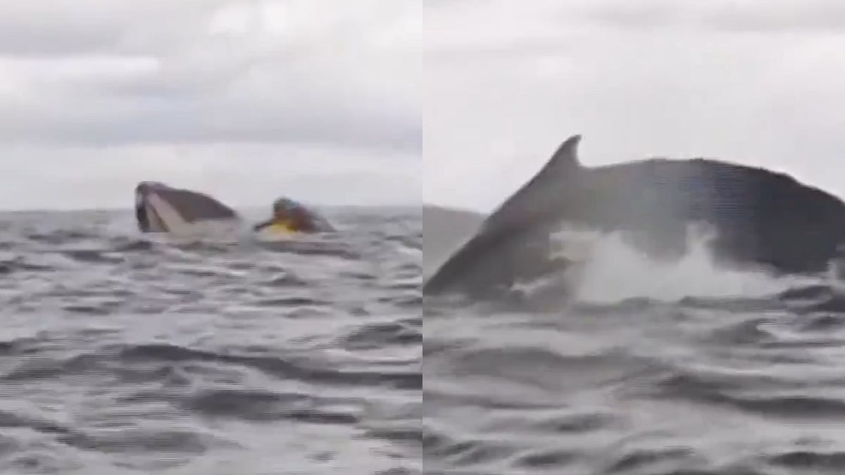 A dramatic video has surfaced online showing a humpback whale swallowing a kayaker before spitting him out off Chilean Patagonia. The man seen in the video reportedly escaped unhurt.