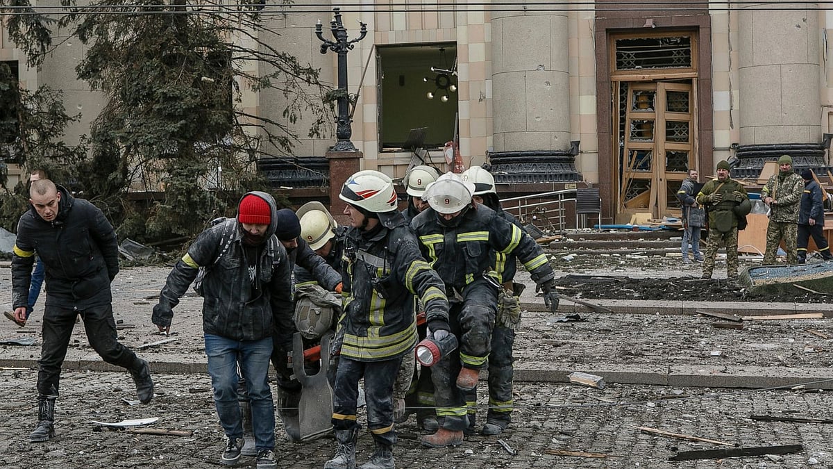 In Kharkiv, with a population of about 1.5 million, at least six people were killed when the region's Soviet-era administrative building on Freedom Square was hit with what was believed to be a missile.