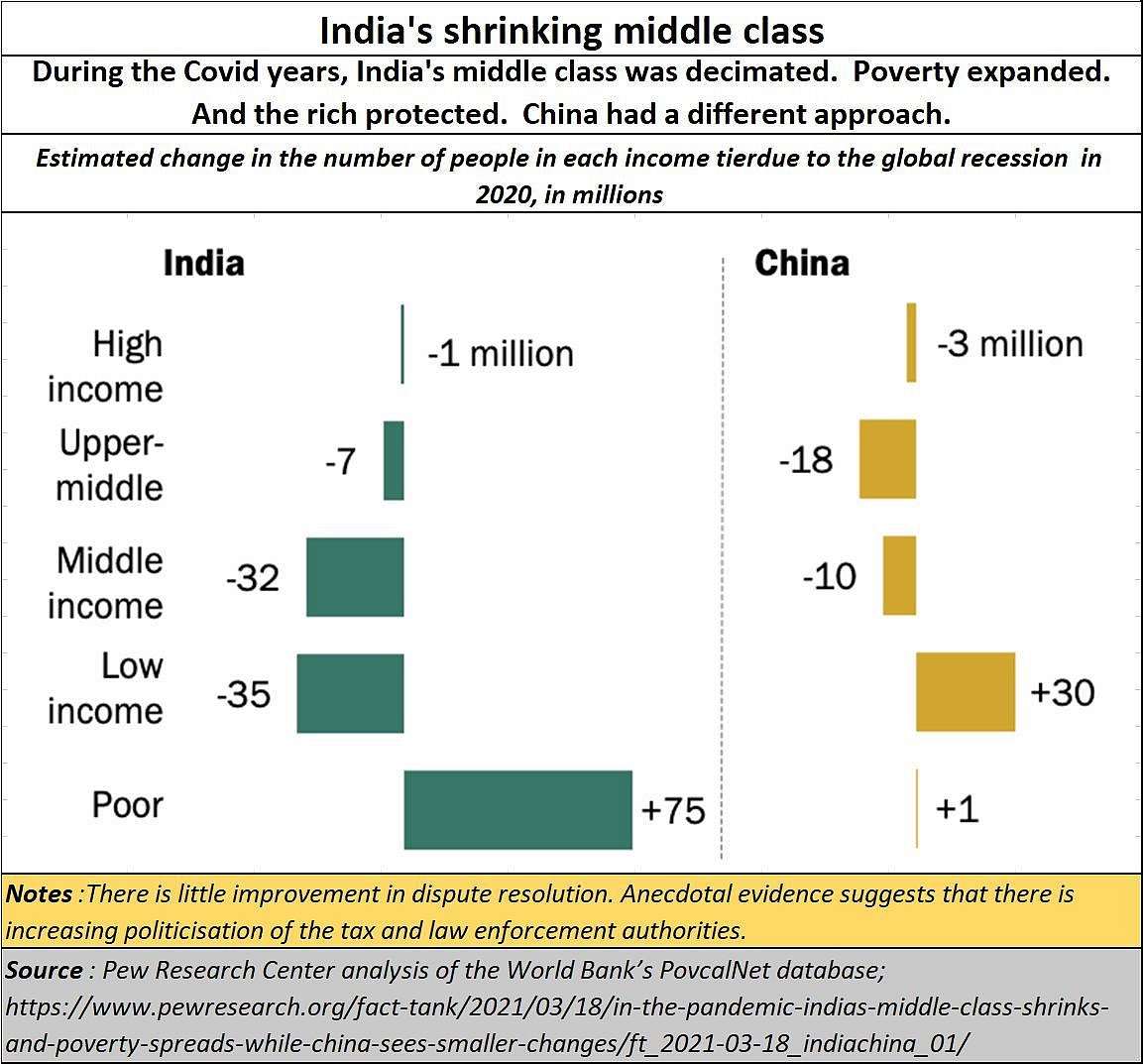 India’s poor track record on protecting the poor is by now quite well documented. The apathy was noticeable when Covid struck India. Unlike China, which was ready to rein in its wealthy and introduced measures to protect the poor and the middle-class populations, India did quite the reverse. It protected the rich, and allowed the middle class to shrink, and the poor to get decimated.