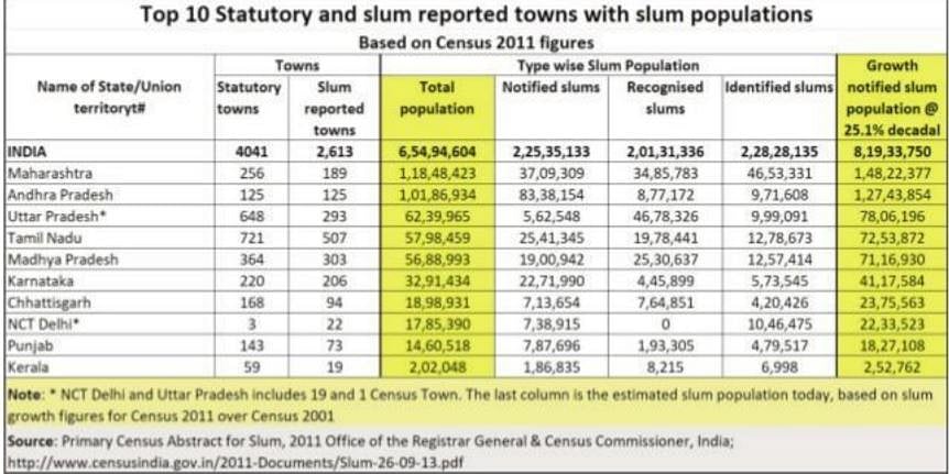 In Maharashtra, almost 10% of its population will be slum dwellers. As an earlier column on these pages had pointed out , there is clear evidence of encouragement from politicians for slum formation.