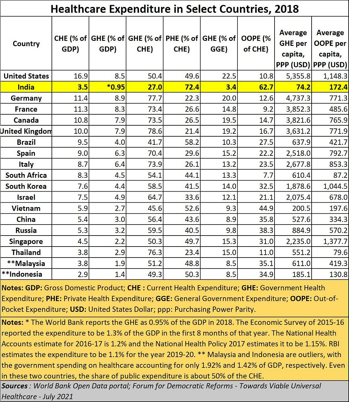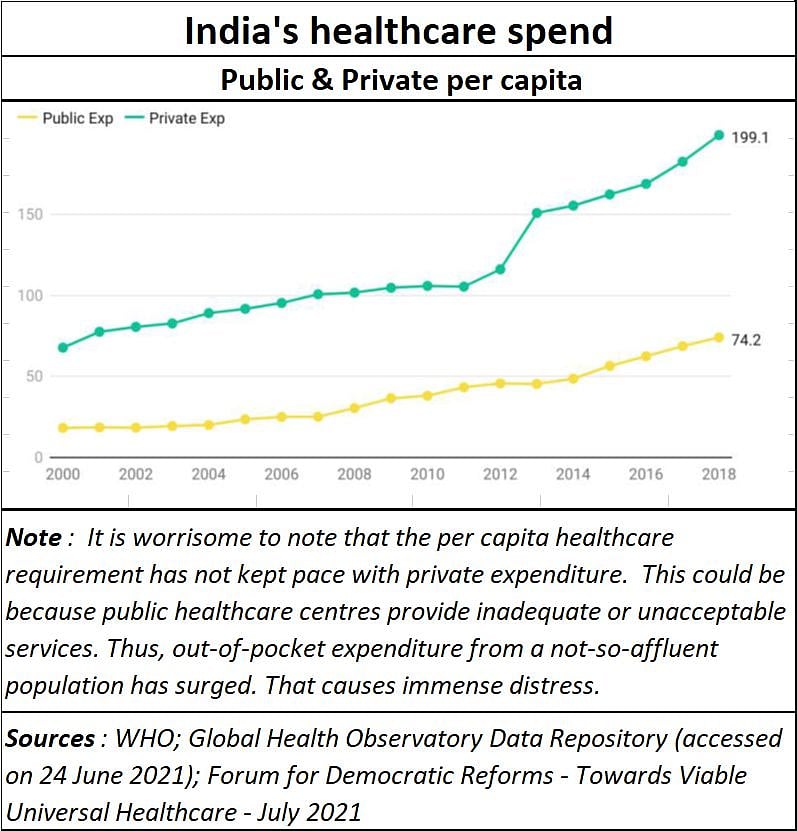 All the data that appears in this article owes much to an excellent report on healthcare, published by the Forum of Democratic Reforms (Towards Viable Universal Healthcare - July 2021- (http://news.loksatta.org/2021/11/launch-of-fdrs-publication-towards.html). This 183-page book replete with over 200 tables and charts, provides many more details about how wanting India’s healthcare systems are.