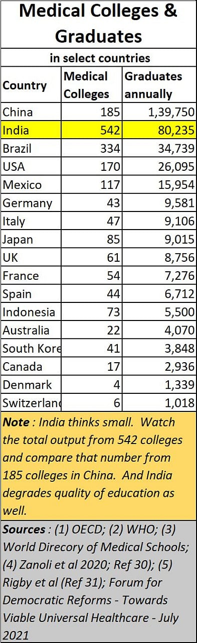 Look at the numbers. China has more graduates coming out of its medical colleges from fewer medical colleges than is the case in India. Most doctors who have interacted with medical students from Chinese centres will tell you that the quality of education in India has been deteriorating rapidly. They will testify to the fact that the quality of education imparted in China is excellent. India has poorer numbers, yet collapsing standards as well.