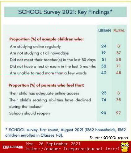 A recent report, Locked Out: Emergency Report on School Education, by School Children’s Online and Offline Learning (SCHOOL), among underprivileged households sheds light on the extent of the problem. And, that is why we need to focus on reopening schools in the safest way possible. Remote learning is not working for most Indian students. And we are seeing an ever-widening gap in disparities in education and learning, that is just likely to grow over time. While technology is a great tool for enhancing learning, face to face learning still works the best for the largest cohort of students. For students who are first generation learners, the need for a teacher is far higher, than those students who have a legacy of formal learning in their families.