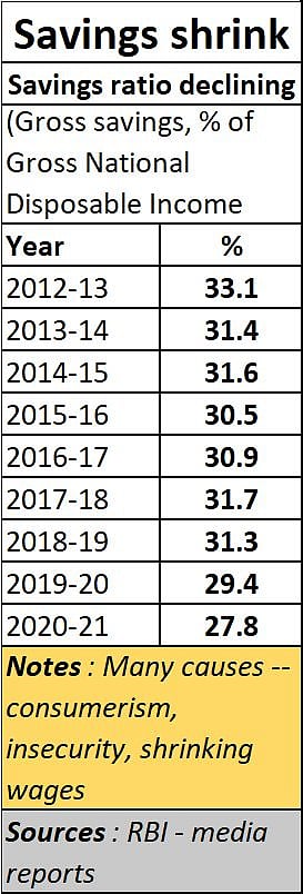 The vulnerability of small businesses, and the oft-heard stories about people losing their jobs, made Indians save a lot less than they ought to have. This was partly because there was little money left to save, but also in some cases, a rebound into consumerism after two years of restrained purchases-- thanks to the pandemic.