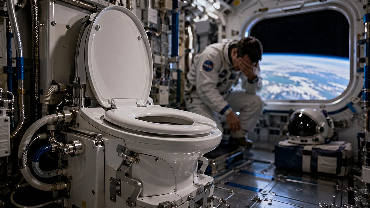 In a spaceship, where it’s a zero-gravity zone, everything is weightless. You can’t flush anything down; instead, ‘solid’ waste has to be redirected via airflow to vacuum-sealed bags, which in turn are stored in canisters that are released upon re-entry, burning up all evidence. In the ISS, thanks to the fancy Universal Waste Management System (UWMS), ‘liquid’ waste is recycled for use as drinking water via an advanced filtration system.