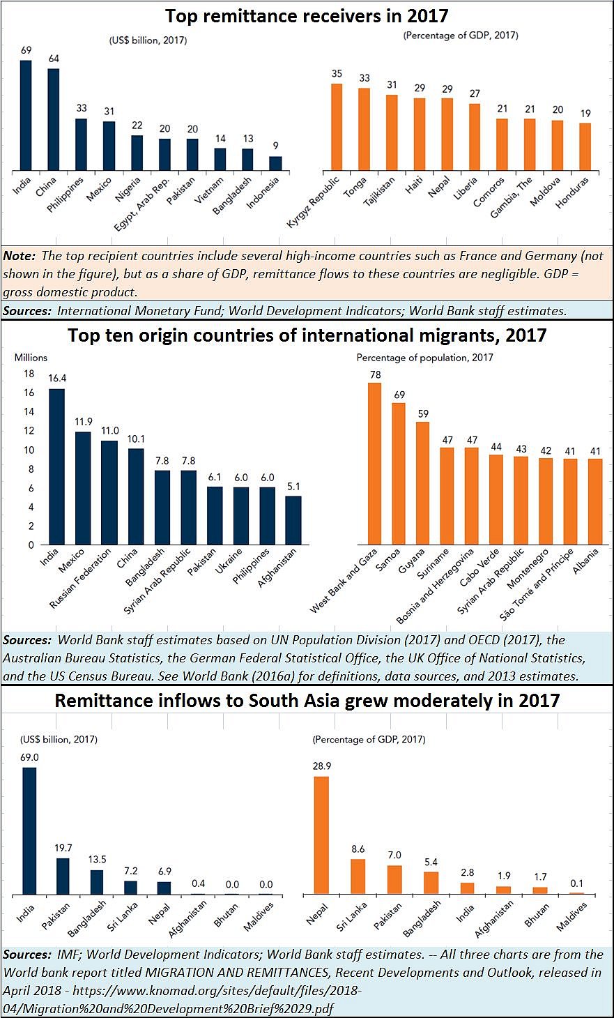 Today, there are many reasons to believe that the fears may have been overstated. But the concerns still remain, and need to be addressed. But first the good news. India remained the biggest recipient of remittances in the world during 2017 (see chart). It received $69 billion as remittances and was followed by China which received $64 billion.