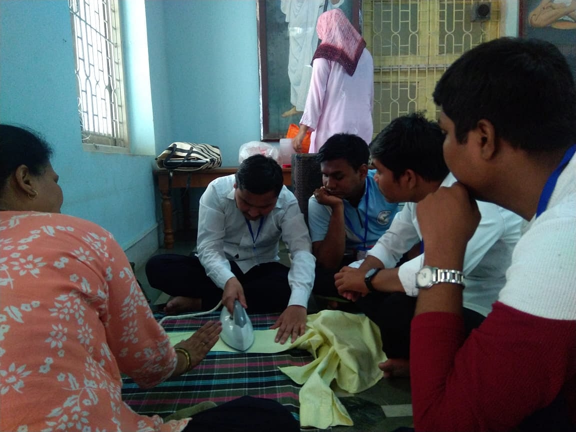 Students are also taught to do day to day chores like washing, folding and ironing the clothes; washing vessels; identification of things like pulses, shapes, coins and objects; cutting and peeling vegetables and fruits; oiling and rolling patties; roasting food; how to use a cooker for cooking; and for some fun, they are also taught how to play games.
