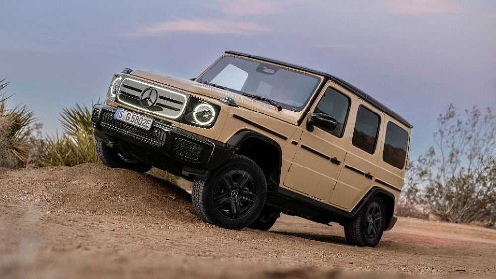 The design features include a roof-mounted spoiler, optional rear storage instead of a spare wheel, and minor tweaks to the standard G-Class appearance. Inside, the cabin retains twin 12.3-inch digital displays with EQ-specific graphics, replacing traditional differential switches with controls for the ‘tank turn’ feature and low-range activation. Mercedes-Benz opened bookings for the G 580 EV in July 2024, with the model arriving as a limited-number CBU import.