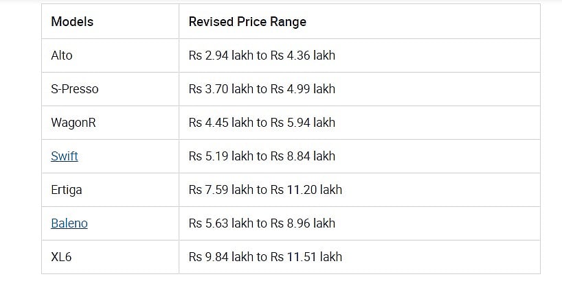 - Maruti has cited increasing input costs as the reason for the price hike.
