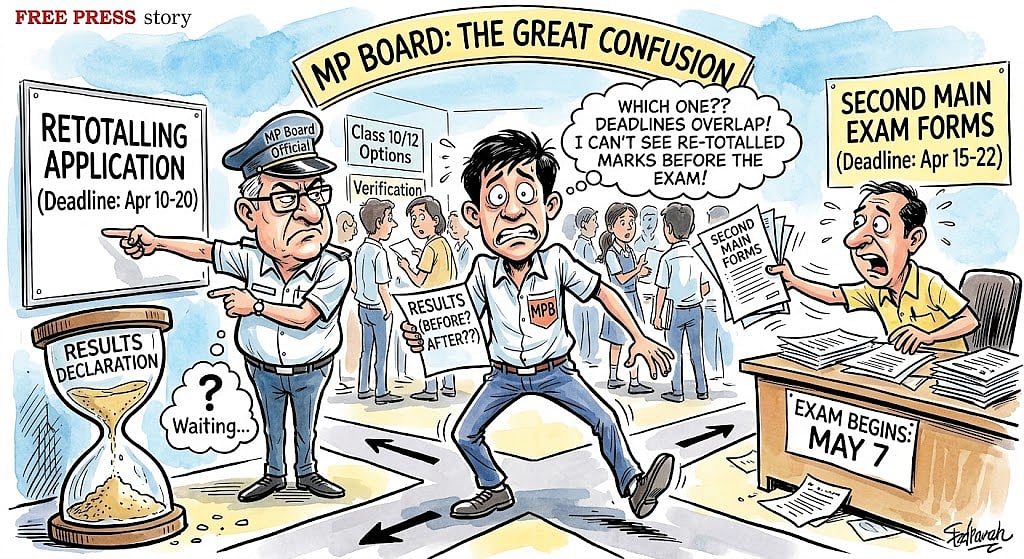 Bhopal (Madhya Pradesh): Confusion prevails among Class 10 and 12 students over the options given to them. The dilemma is whether to apply for answer sheet retotalling or opt for the second main examination as the Board of Secondary Education’s timelines for both the processes overlap.