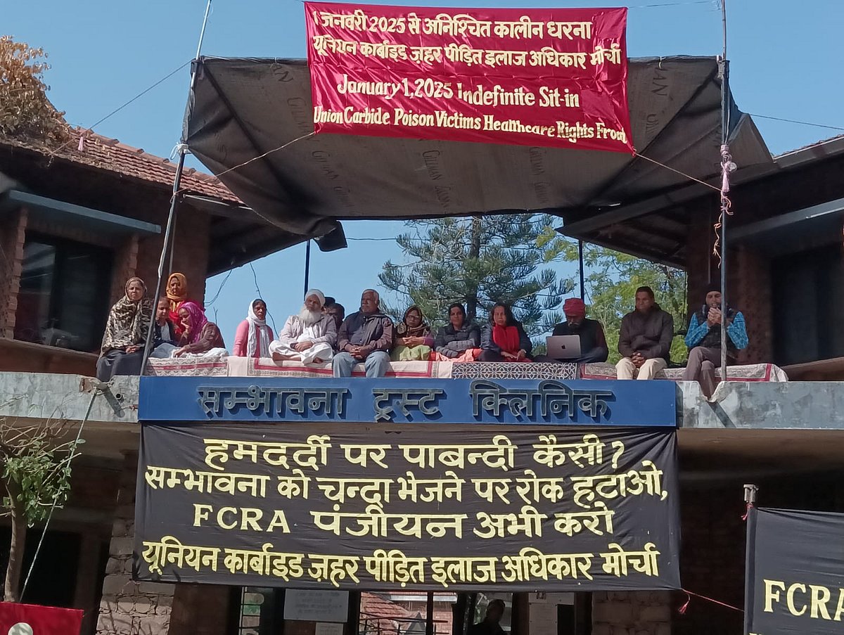 Bhopal (Madhya Pradesh): Members of the Union Carbide Poison Victims Healthcare Rights Front commenced their indefinite sit-in in Bhopal on Wednesday, demanding early FCRA registration of the Sambhavna Trust by the Home Ministry.