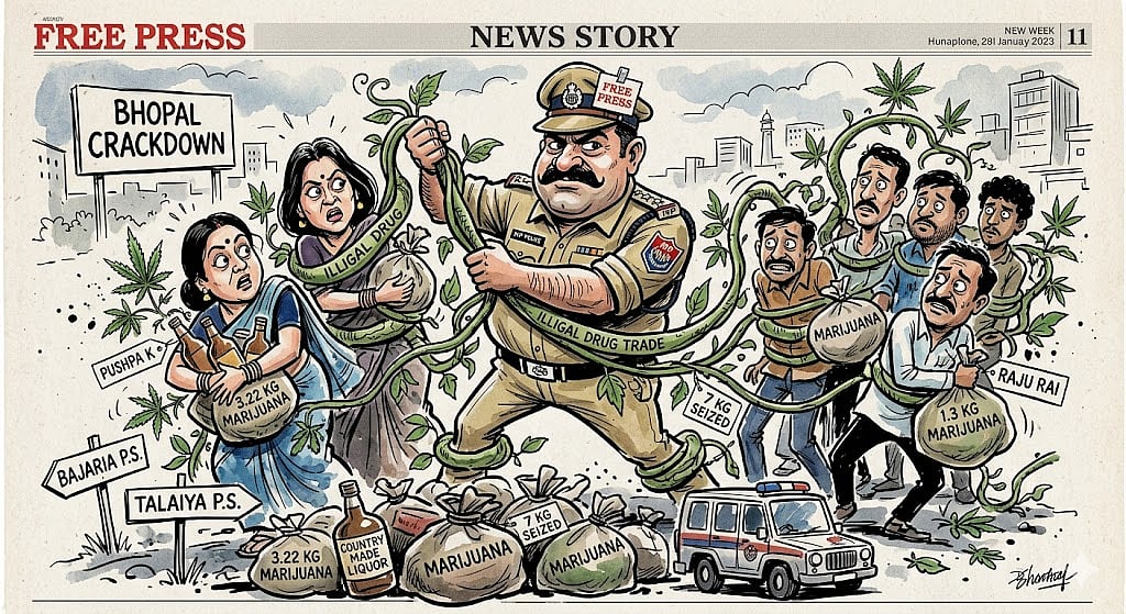 Bhopal (Madhya Pradesh): Intensifying action against the illegal drug trade, local police arrested 11 people including four women in past one week, in a series of raids carried out across multiple police station areas. Police seized 7 kilograms of marijuana during the crackdown.