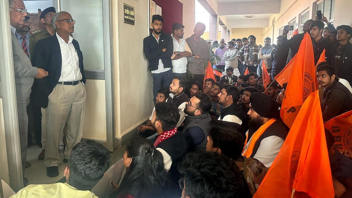 After demonstration, they handed over a memorandum to the registrar in the name of Vice Chancellor. They demanded action within six days against those who are guilty of financial irregularities. They alleged that Rs 16.50 crore was sanctioned for construction of the sports complex in 2015. The sum increased to Rs 19.16 crore in 2019 and the construction work was given to CPA which gave information of spending Rs 23.52 crore.