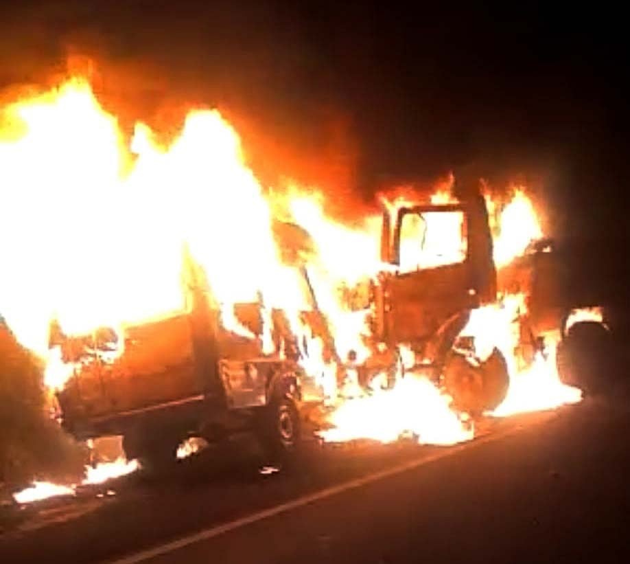 On the way, in front of the Sikkheri Kanjar camp, the dumper coming at a high speed went out of control and hit the trawler. The impact was so strong that both the vehicles caught fire after a head-on collision.