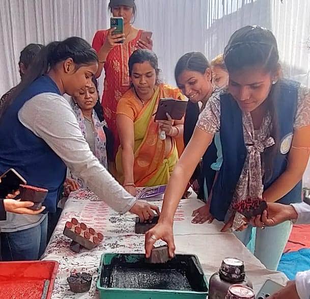 Students of INIFD, Government Women's Polytechnic College and Fashion Designing Institute visited expo on Friday. The students learned the intricacies of the art from weavers. They took part in live demonstration of block printing. Weaver Vijay said that students were given training on tie and dye, block printing and screen printing.