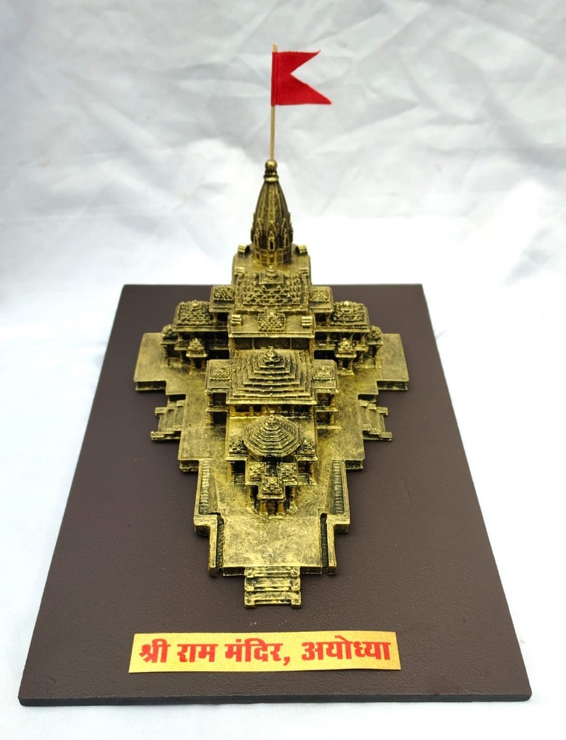 The couple has made three miniature models, having dimensions ranging between 8 and 10 inches in height, of the Ayodhya Temple using sandstone powder. The first is 10 inches high with a 12-inch wooden base and weighs one kg. The second has the same dimensions but has a brassy look, while the third model is 8 inches high.