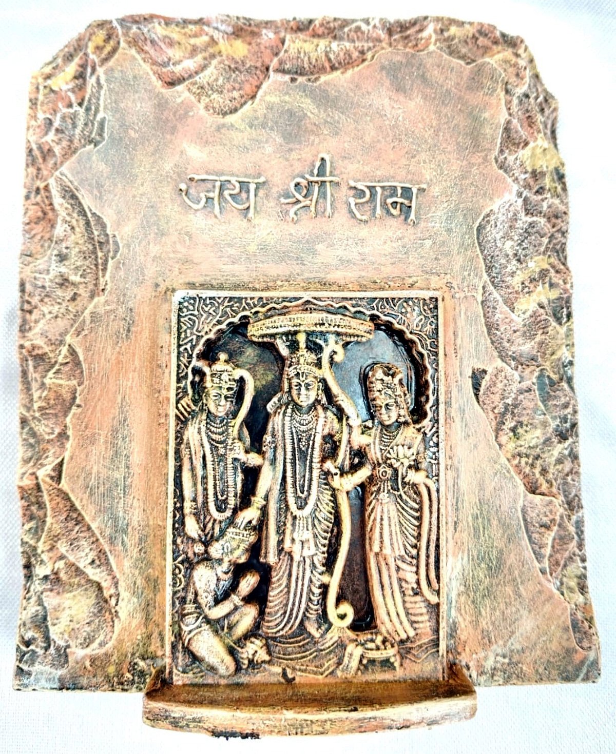 Then, there are two stone carvings, one is a model of the temple, with an image of Lord Rama in the background, and the other of Ram Darbar. Soft stone from Rajasthan has been used for the carvings. They have used external, weather-proof paint so that the carvings won’t deteriorate even if kept in the open.