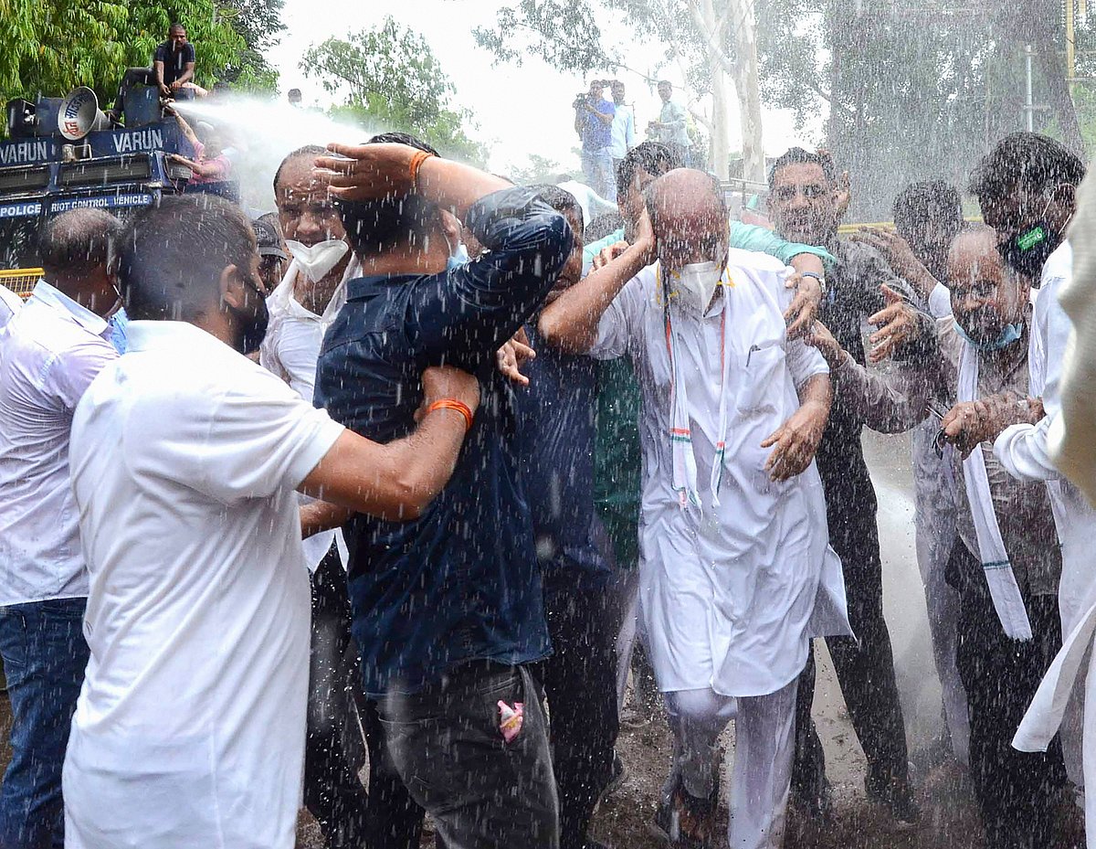 Bhopal (Madhya Pradesh): The Madhya Pradesh government's decision to allot land in an industrial estate to an RSS affiliate associated with small industries prompted the opposition Congress to stage a protest under senior leader Digvijaya Singh here on Sunday wherein police used water cannons.