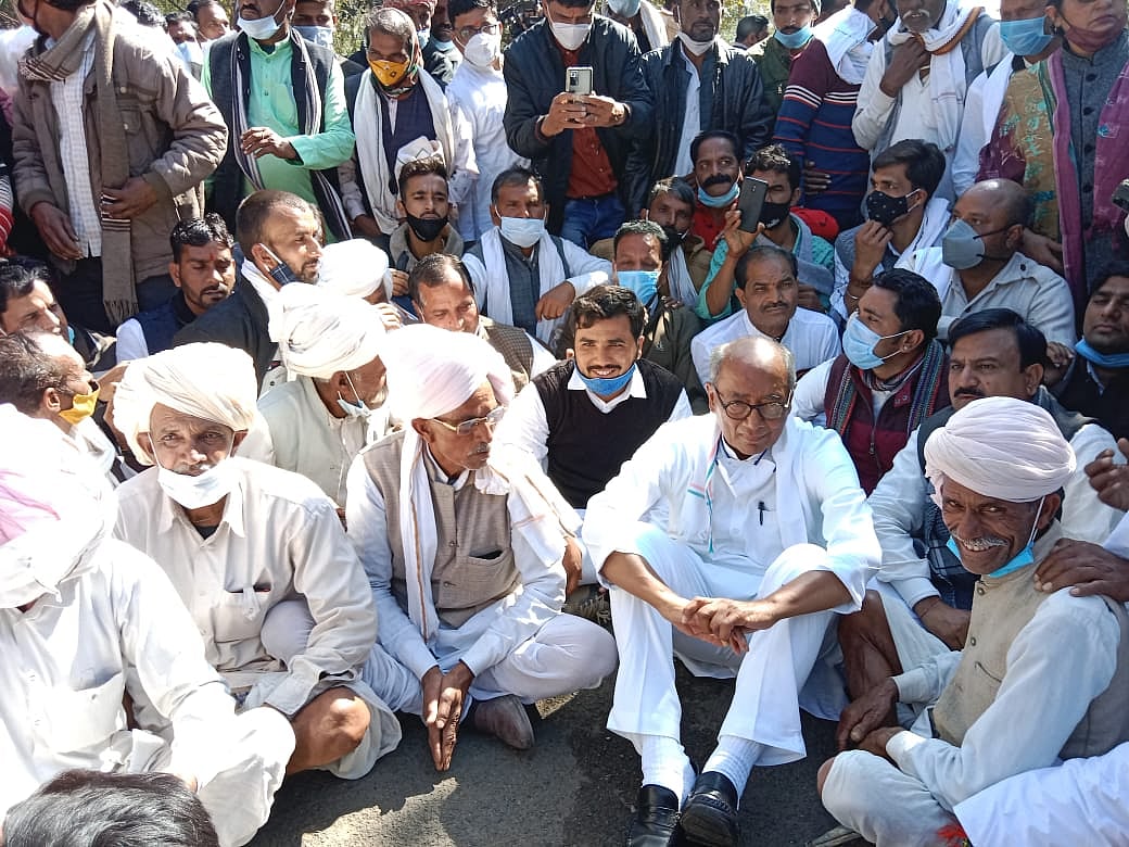 Bhopal (Madhya Pradesh): Politics in the state has heated up after former CM and Rajya Sabha member Digvijaya Singh sat on dharna near CM House on Friday morning, demanding fair compensation to the Tem and Suthalia dam affected people.