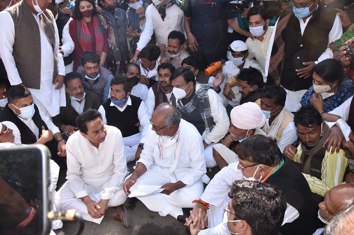On Friday, heavy police arrangements were made outside the official residence of Digvijaya Singh and the roads were barricaded restricting movement of people. Nevertheless, Digvijaya Singh started his march towards CM house along with his supporters and sat near Doordarshan Kendra, after police stopped him there.