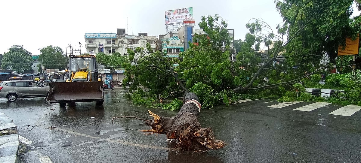 Rains coupled with wind uprooted more than 200 trees along roadsides in Bhopal, and also caused power supply disruptions in many areas as well as traffic snarls. Bhopal Municipal Corporation personnel were seen clearing the roads of trees and branches fallen on the pathways. More than half of the city's electricity supply remained shut since late Sunday night. Road leading to RCVP Academy of Administration was flooded and disrupted traffic flow. As a result, the traffic was stopped from both sides. Traffic was diverted on Raisen Road due to falling trees on the road itself. A part of an old house collapsed near Kotwali police station.