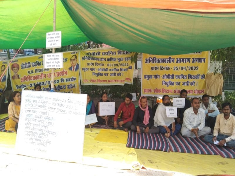 Bhopal (Madhya Pradesh): Four selected teachers of other-backward caste category staging a sit-in outside the directorate of public education fell ill due to the blazing sun and were rushed to the Jai Prakash Narayan hospital on Thursday.