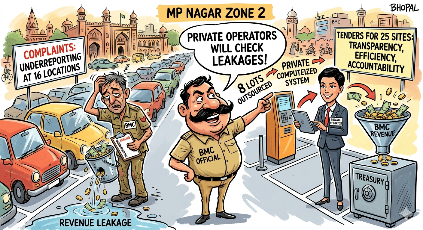 Bhopal (Madhya Pradesh): Bhopal Municipal Corporation (BMC) has decided to shift several parking facilities from departmental management to a contract-based system to curb unauthorised fee collection.