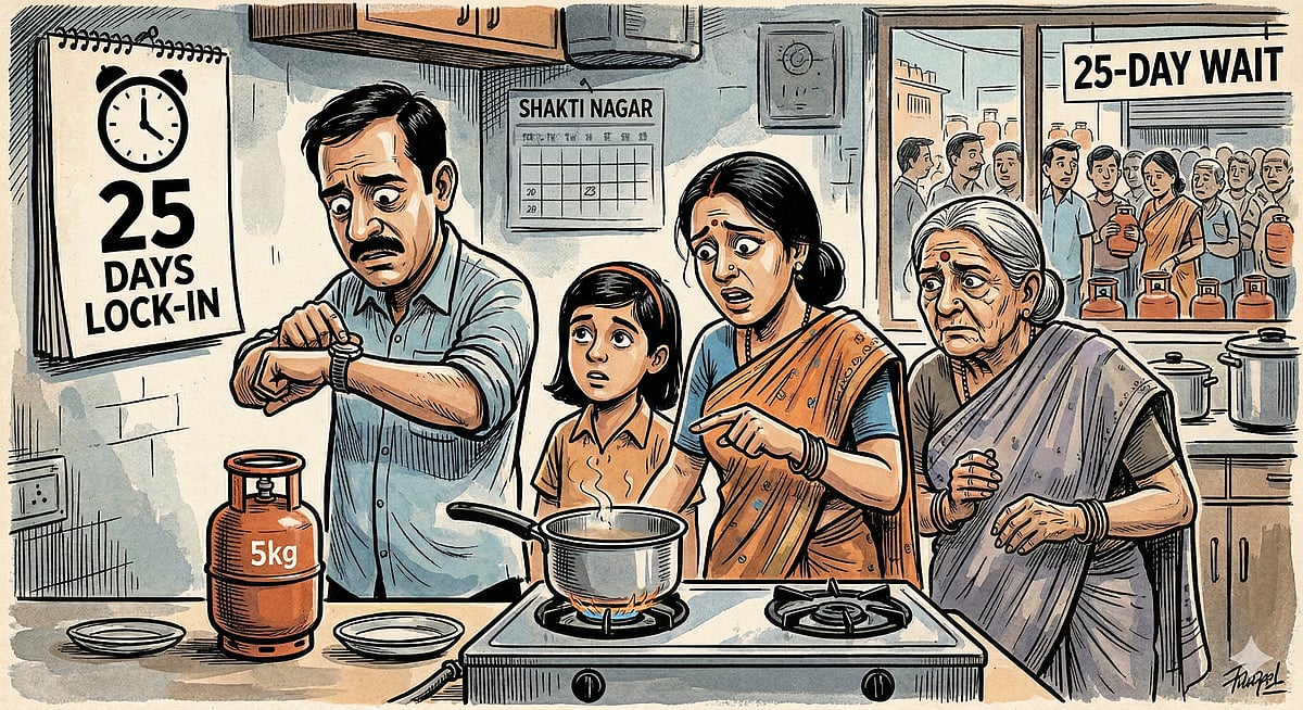 Bhopal (Madhya Pradesh): Urban consumers using 5kg LPG cylinders face hardship as they wait 25 days for a refill, with the lock-in period remaining the same as that for 14.5kg cylinders despite the smaller capacity. Consumers report that the lower-capacity cylinders deplete more quickly, making the wait for refills a challenge.
