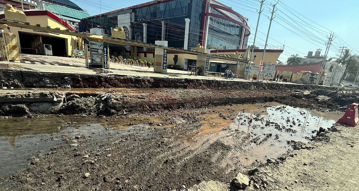Bhopal (Madhya Pradesh): Repeated lapses during the construction of a 10-lane road on Ayodhya Bypass led to another drinking water pipeline burst on Monday, marking the fourth consecutive day of such incidents.