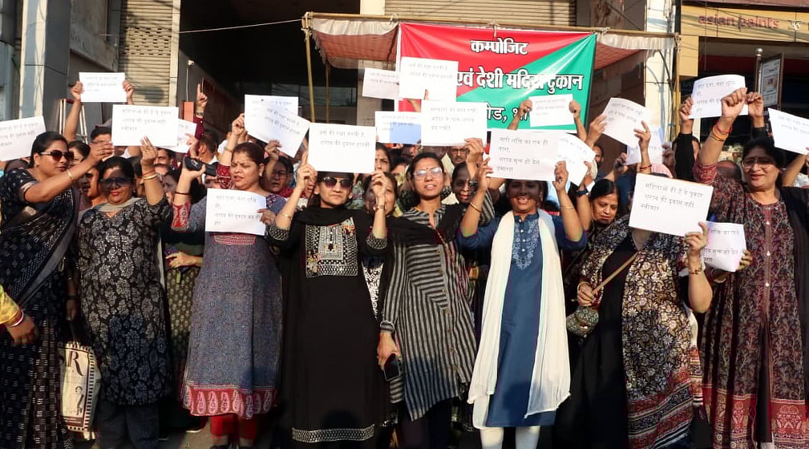 Bhopal (Madhya Pradesh): The relocation of two liquor shops in the city has sparked widespread protests, with residents of Kolar Road and Vijay Nagar voicing strong opposition. While large demonstrations were held at Mandakini Square in Kolar, women in Vijay Nagar adopted a unique form of protest by organising a bhajan sit-in outside the disputed outlet.